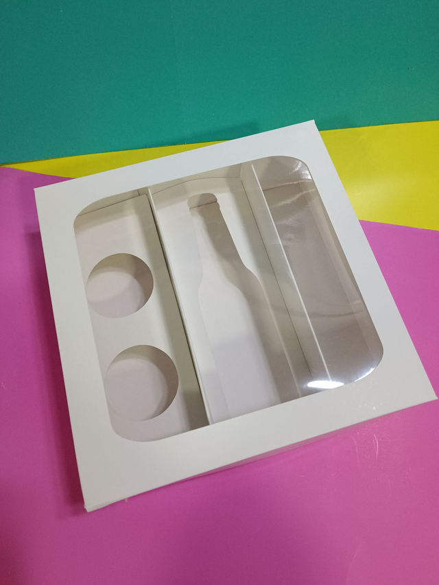 Caja para botella + Division y 2 Cupcakes