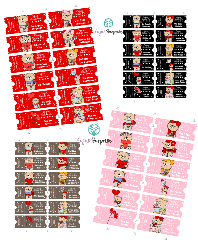 • Cuponera con 12 cupones Prepicados. 9x4 cm.